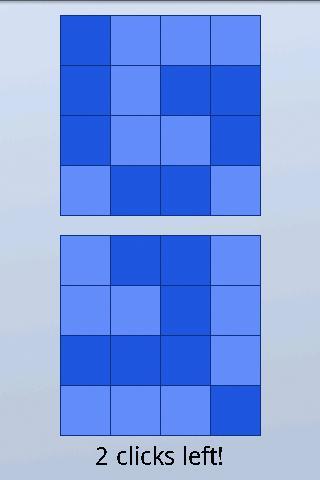 Flip is an easy to learn yet hard to master puzzle game. The objective is to match the two grids with eachother. Tap a square on the bottom grid to flip that square and all surrounding squares.